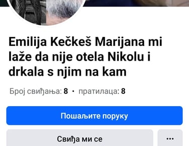 KAKO VAS NIJE SRAMOTA OSTAVILI STE ME SAMU HENDIKEPIRANU BEZ ICIJE POMOCI BEZ POSLA KOJI SU MI UNISTILI.SVI SU DOBRO ZNALI KO JE MOJ OTAC KECKES BELA KOJI ME ZLOSRAVLJA OD MALENA TAKODJE SU SVI ZNALI DA ZIVIM U NEHUMANIM USLIVIMA U LETNJOJ KUHINJI OGADJENA MEDJIU PSIMA TAKODJE SU SVI ZNALI DA SAM GODIMAMA IZLOZENA TESKOM INTERNETSKOM ZLOSTAVLJANJU OD STRANE DVE BOLESNE OSOBE IZ HRVATSKE NIKO NIJE REAGOVAO IAKO SAM SLUCAJ VISE PUTA PRIJAVLJIVALA ODELJENJU ZA VISKOTEHNILOSKI KRIMINAL U BEOGRADU.TAKODJE JE CUDNO DA NEMAM NIKAKVU POMOC OD DRZAVE NI PENZIJU A LJUDI KIJIMA NISTA NE FALI DOBIJAJU I PENZIJU I PIMOC DOK JA NIKAD OD OVE DRZAVE NISAM IMALA NISTA IAKO SAM RODJENA BEZ DESNE PODLAKTICE CAK PREKO SOCIJALNOG ZELE DA MI NAMESTE IAKO SVI DOBRO ZNAJU DA ME OTAC ZLOSTALJA I PONIZAVA OD MALENA I DA ZIVIM U NEHUMANIM USLOVIMA .TAKODJE IMAM BRATA KKECKES IGORA KOJI ME NE KONTAKTIRA I PONASA SE KAO DA NE POSTOJIM DECU MU NISAM UPOZNALA A KAD DODJE U SENTU IZVEDE OCA U RESTORAN A MENI SE NE JAVE.